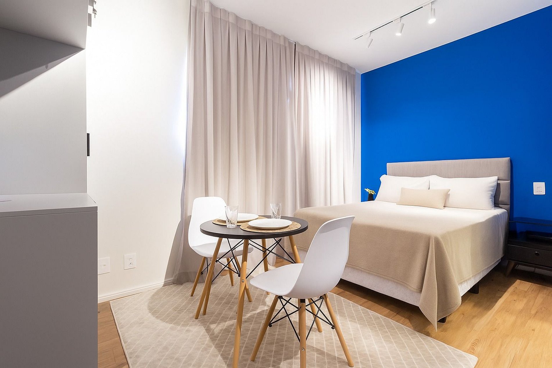 Studio moderno, decorado e completo para sua estadia no bairro do Belém, em São Paulo. Equipado com refrigerador, micro-ondas, cooktop, armários, cortinas, espelhos, fechadura digital e cama de casal com enxoval de qualidade. Banheiro com box e acabamento em mármore. Localização estratégica, com fácil acesso a comércios e serviços — ideal para quem busca mobilidade e praticidade.
