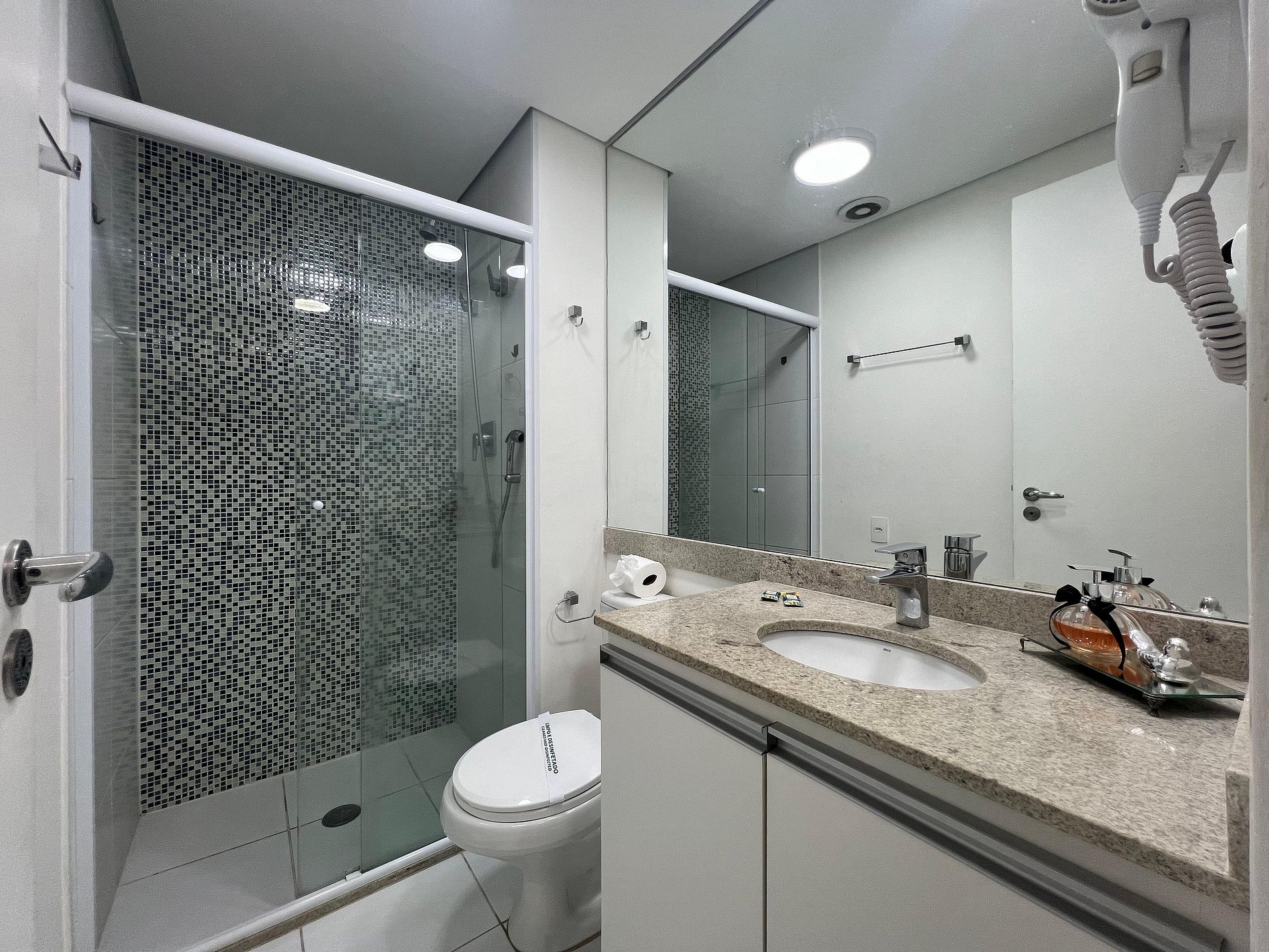 * 2 rolos de papel higiênico, sabonete e detergente (não há reposição)