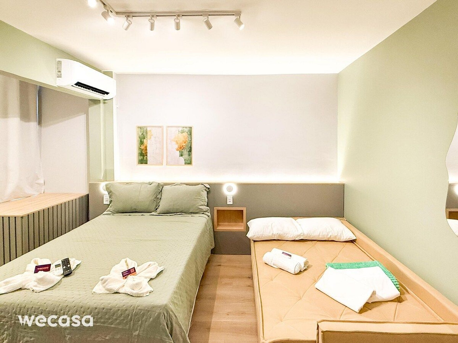 Perfeito para famílias, casais ou grupos de até 4 pessoas. O studio é equipado com cama de casal e sofá-cama, oferecendo uma estadia funcional e aconchegante.